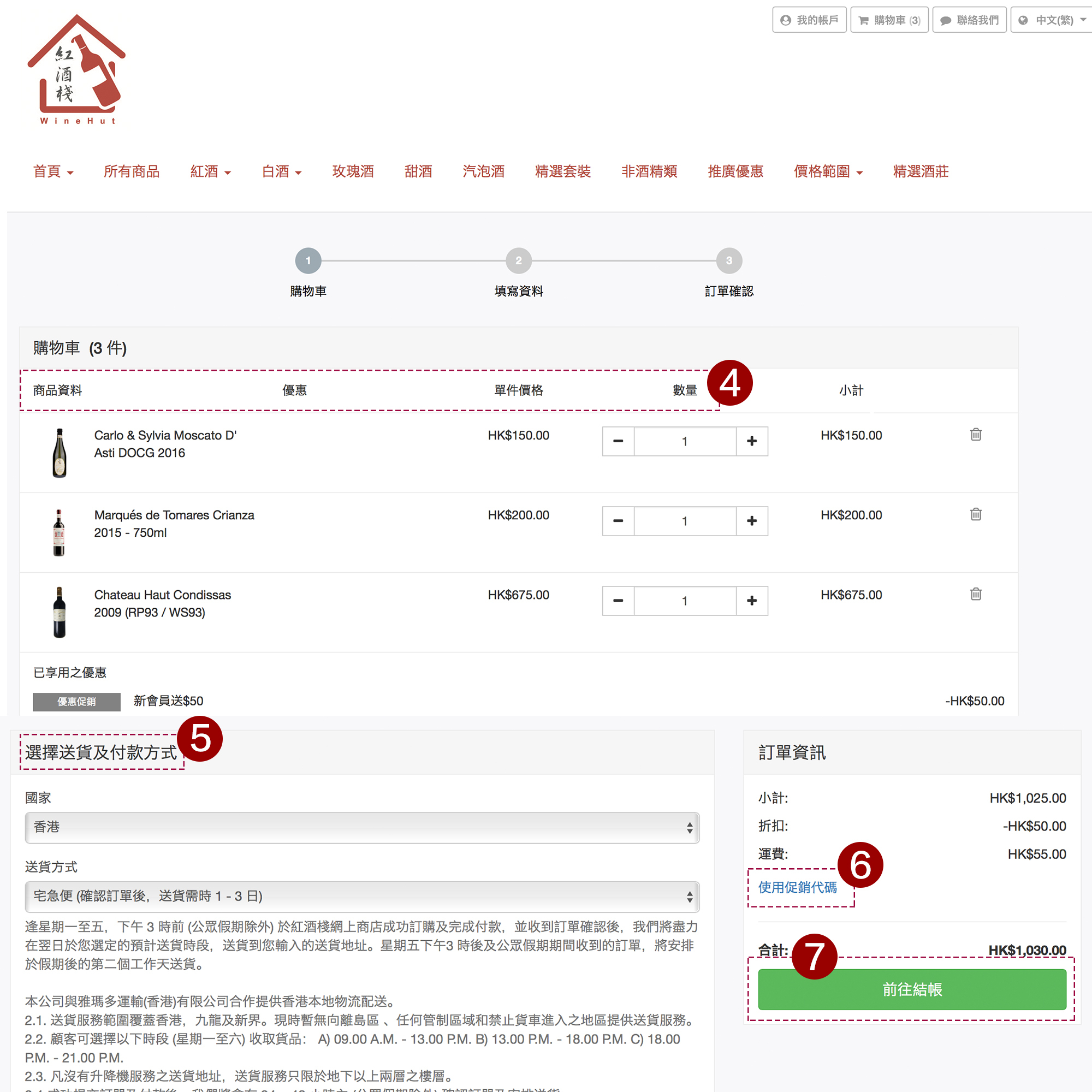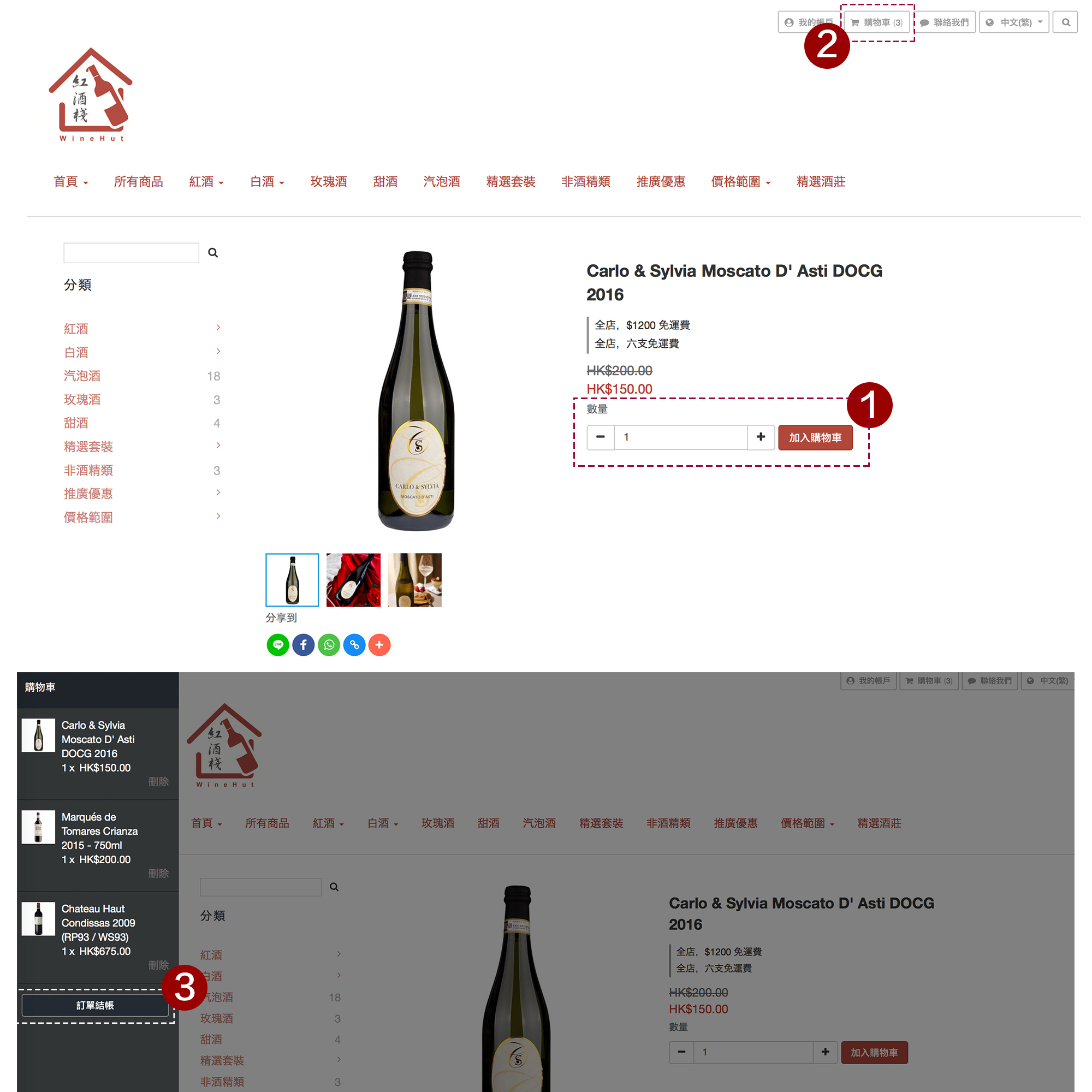 2. 當完成挑選所有酒款後,可點擊右上方的「購物車」查看需要購買的產品。