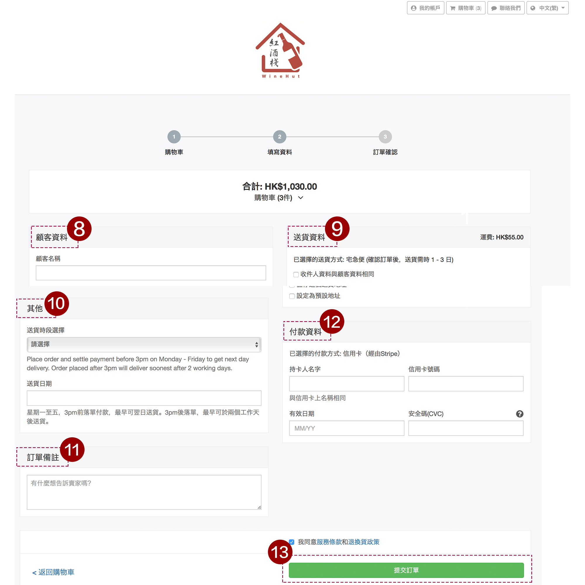 9. 填寫送貨資料,包括收件人名稱、聯絡電話和送貨地址。
