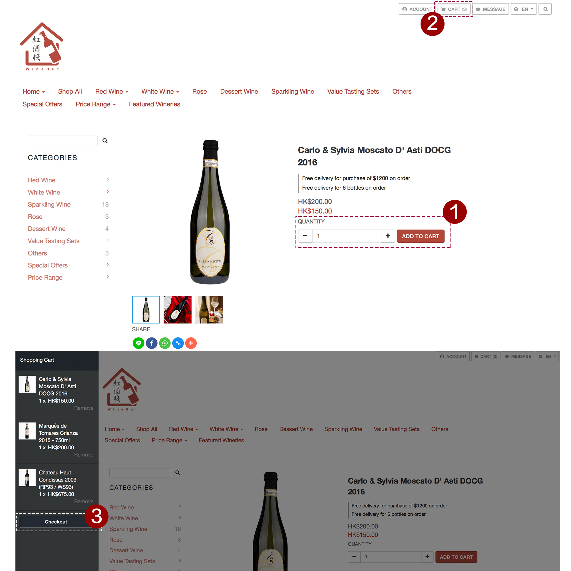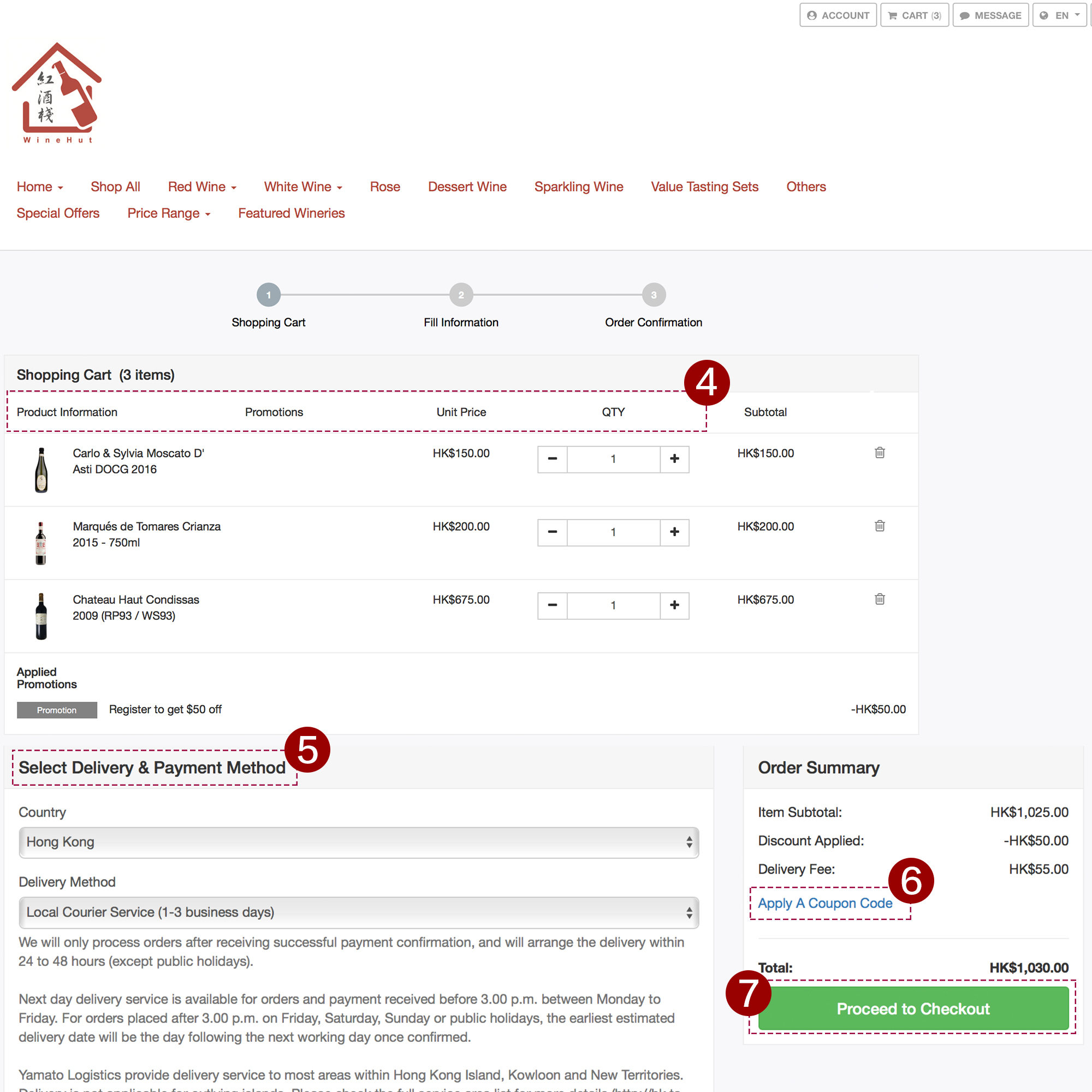 Upon successful order placement, you will receive an immediate confirmation while you are still at winehut.hk. You will also receive an order confirmation email at the email address you provided.