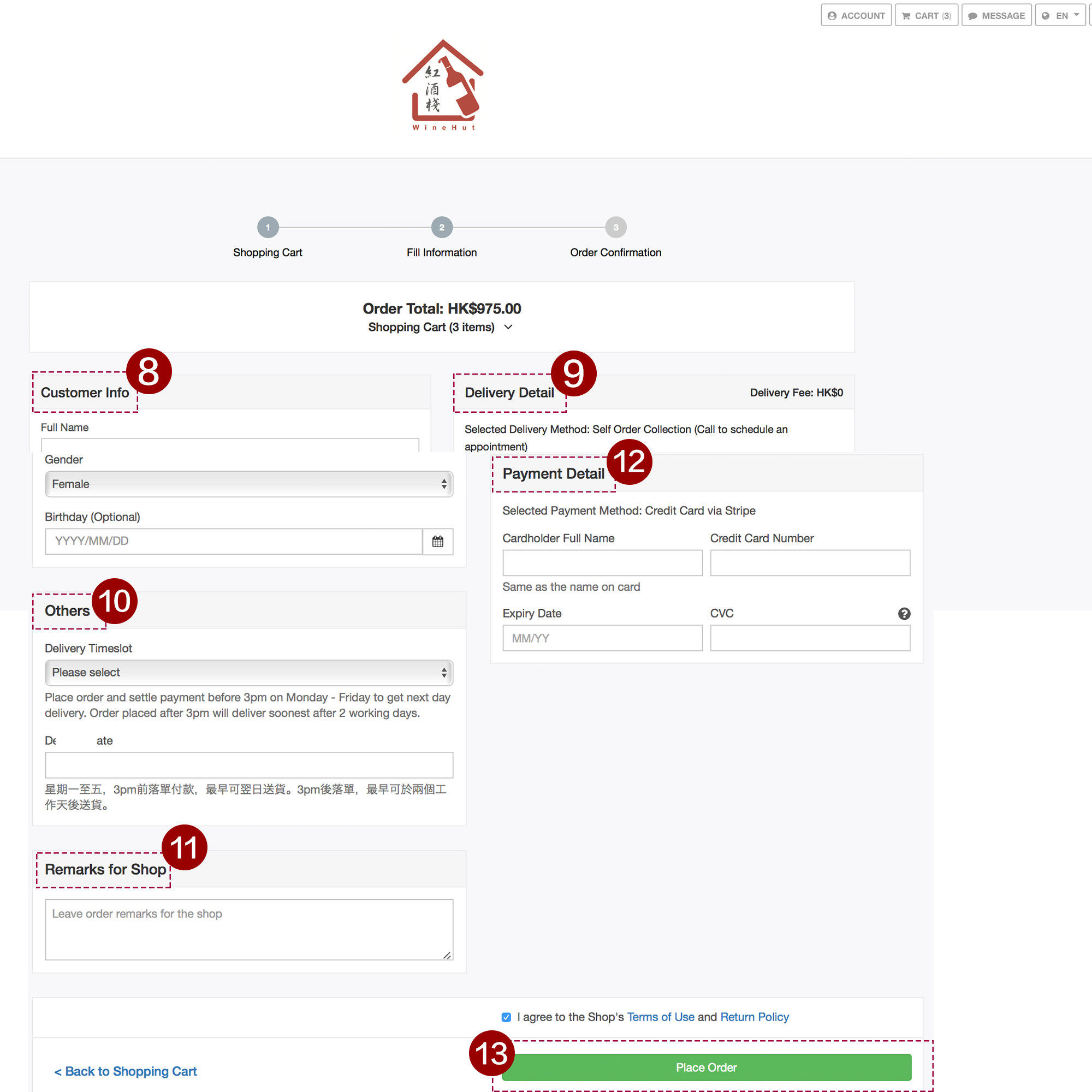 9. Provide "Delivery Details", including Recipient Name, Contact Number and Address.